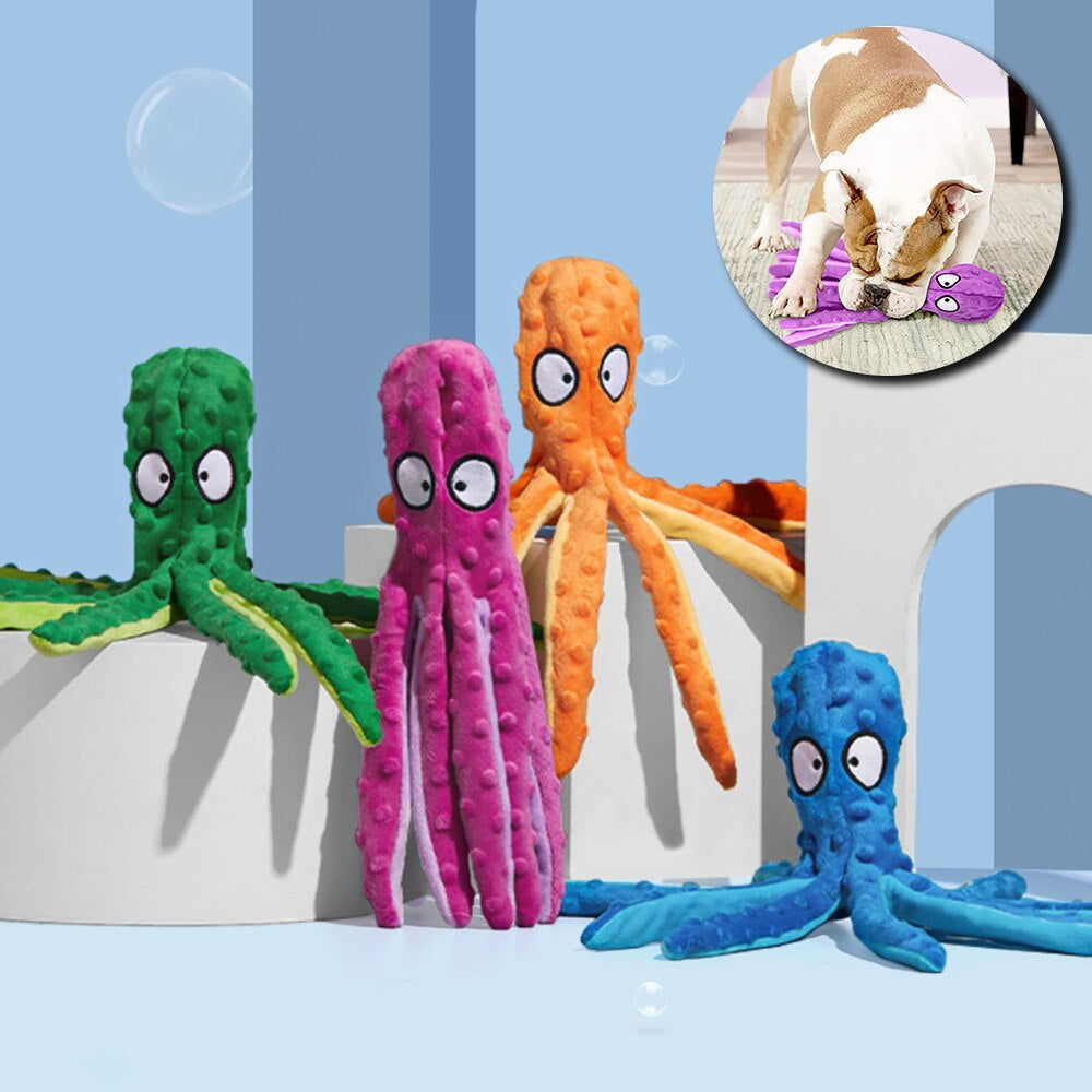 BRINQUEDO COM TEXTURA - Os tentáculos, além de serem uma atração visual, são texturizados por fora e, no interior, têm um papel tátil, que faz um ruído suave ao apertar ou apertar, criando uma curiosidade a mais para o seu animal de prender.